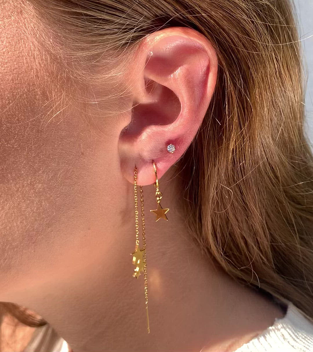 JOAN SOLITAIRE STUD GOLD LOOP CHAIN EARRING
