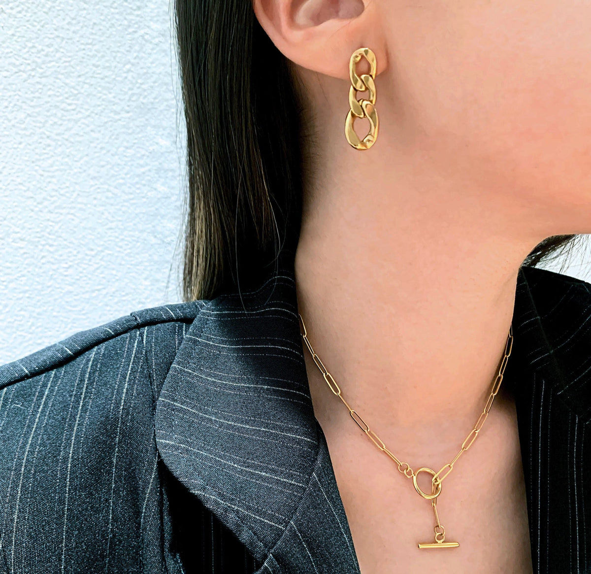 I absolutely love the Cici earrings. They are the perfect weight and are so gorgeous !! I love that you can have great quality without breaking the budget. I have sensitive ears due to a metal allergy. These earrings are made from stainless steel and coated with 18k gold and do not bother my ears at all!! I highly recommend this jewelry to anyone !!