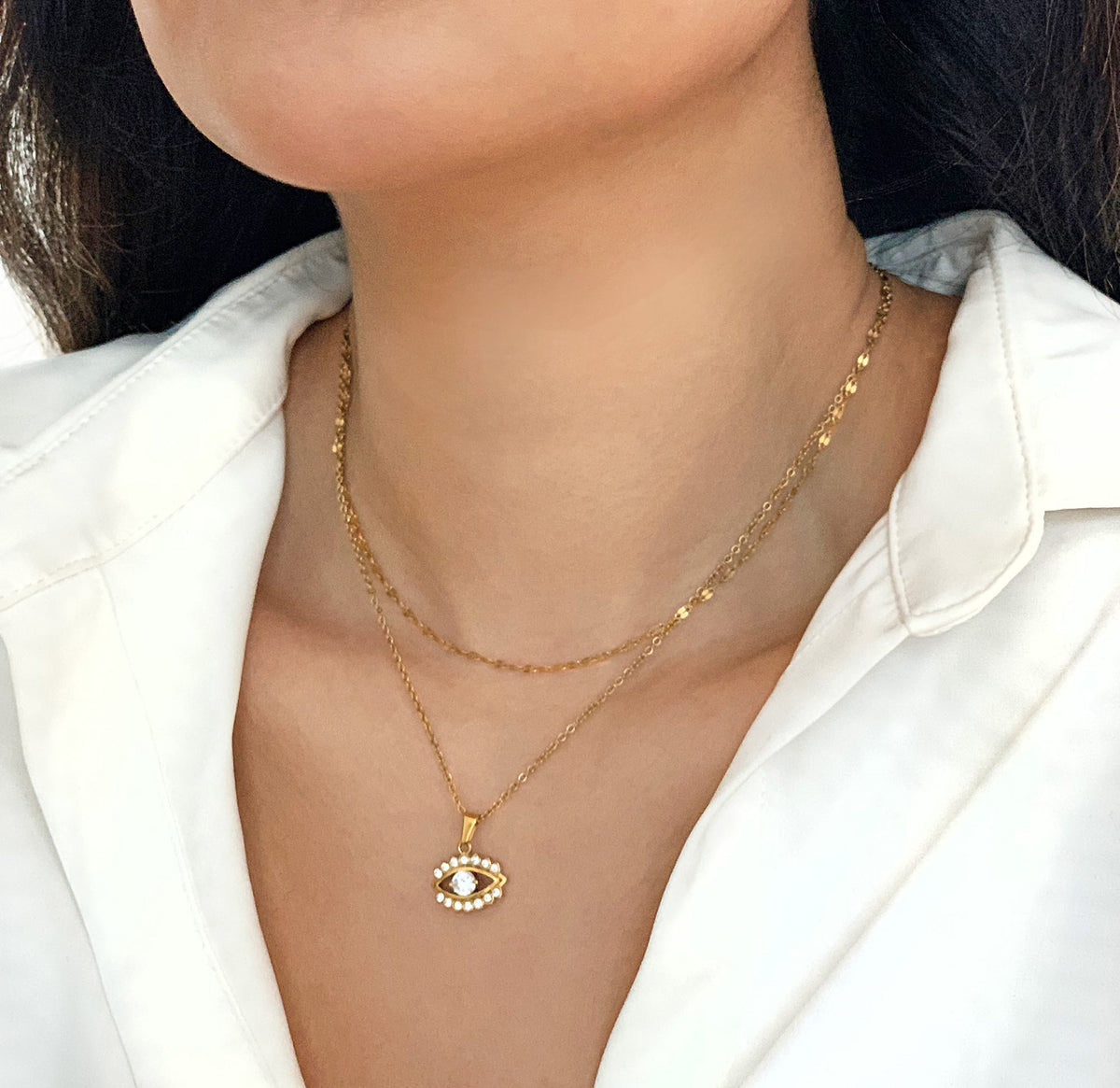 ADJUSTABLE 18K GOLD EVIL EYE PENDANT NECKLACE